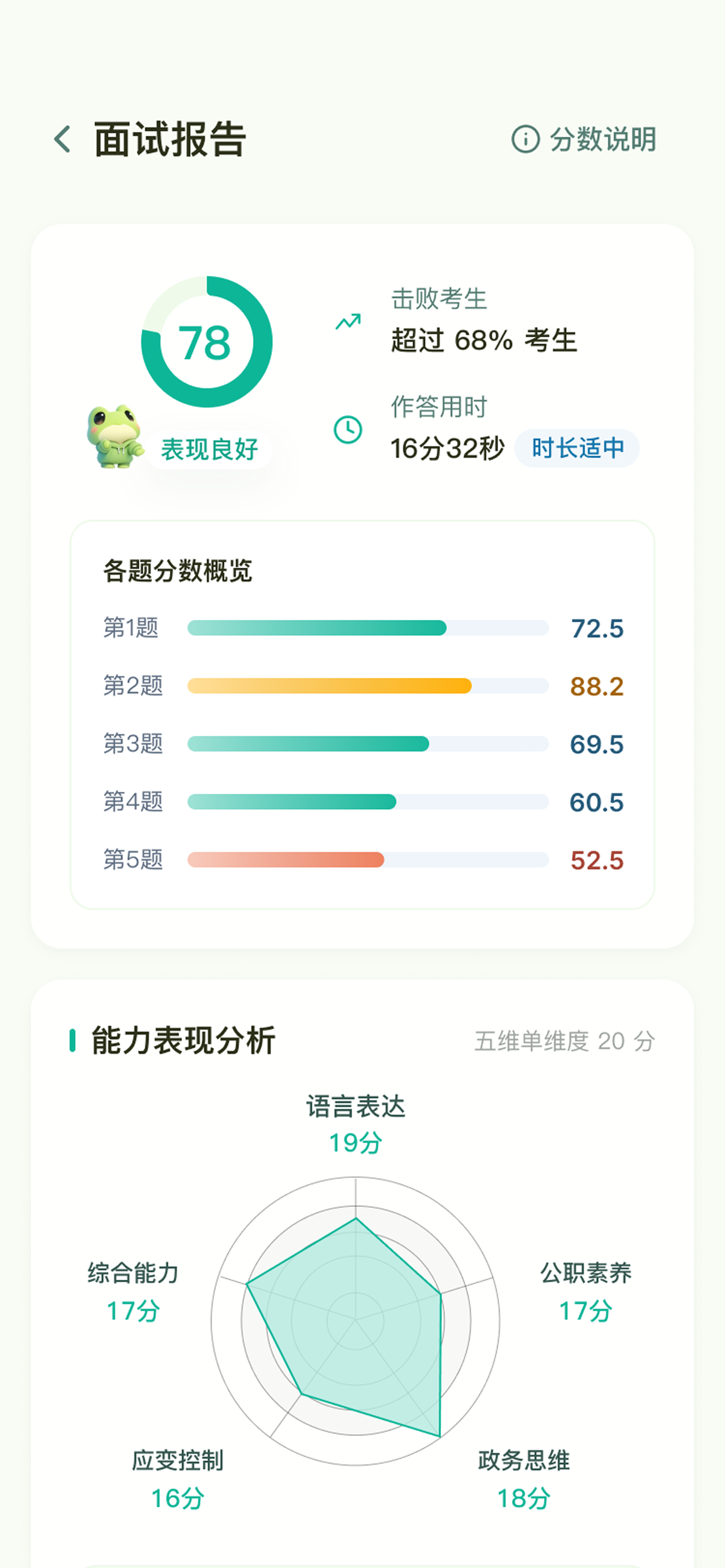 不仅分析语音内容,更捕捉你的仪态、表情与气场。全方位模拟真实面试场景,让你在考场上游刃有余。